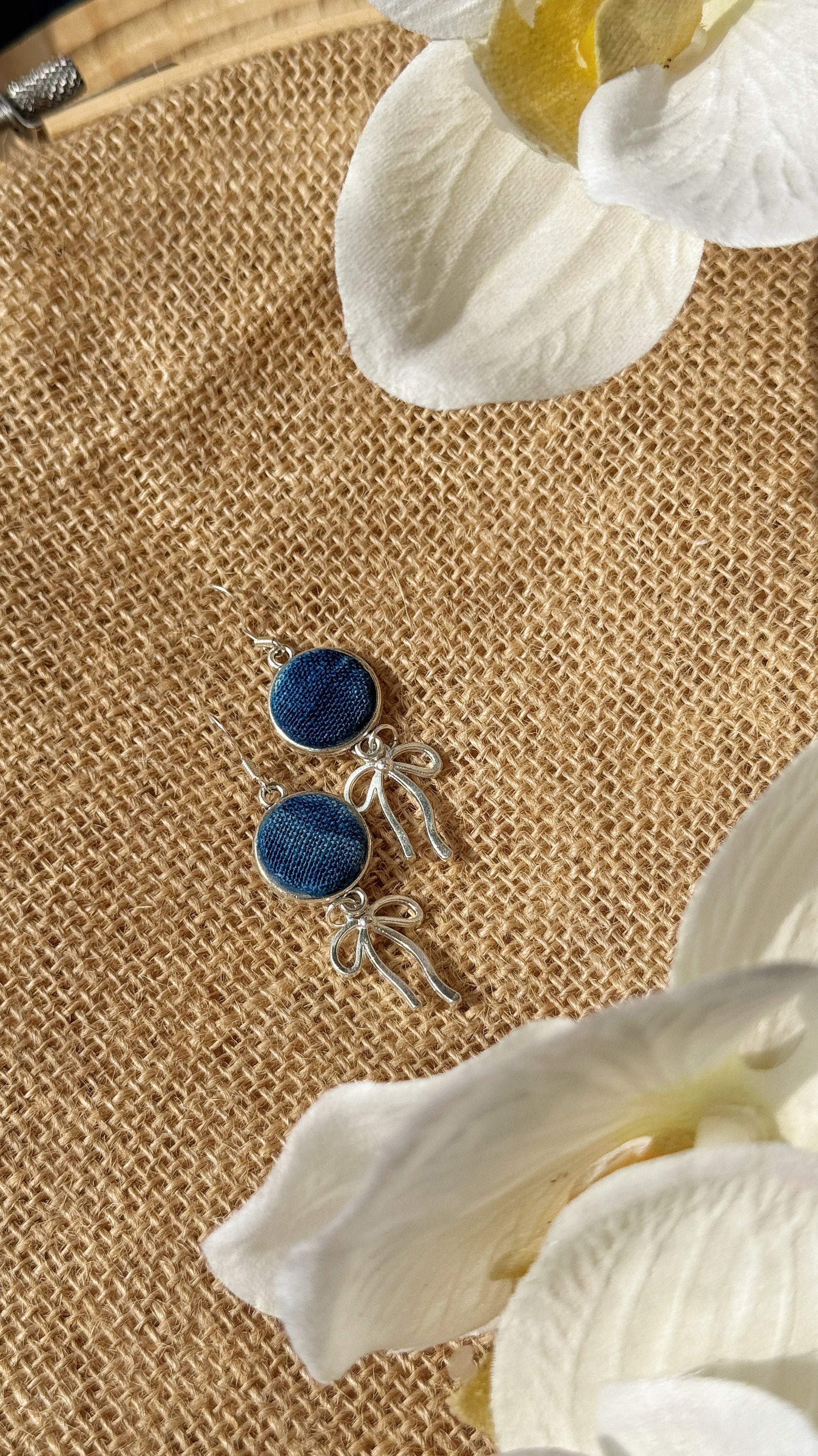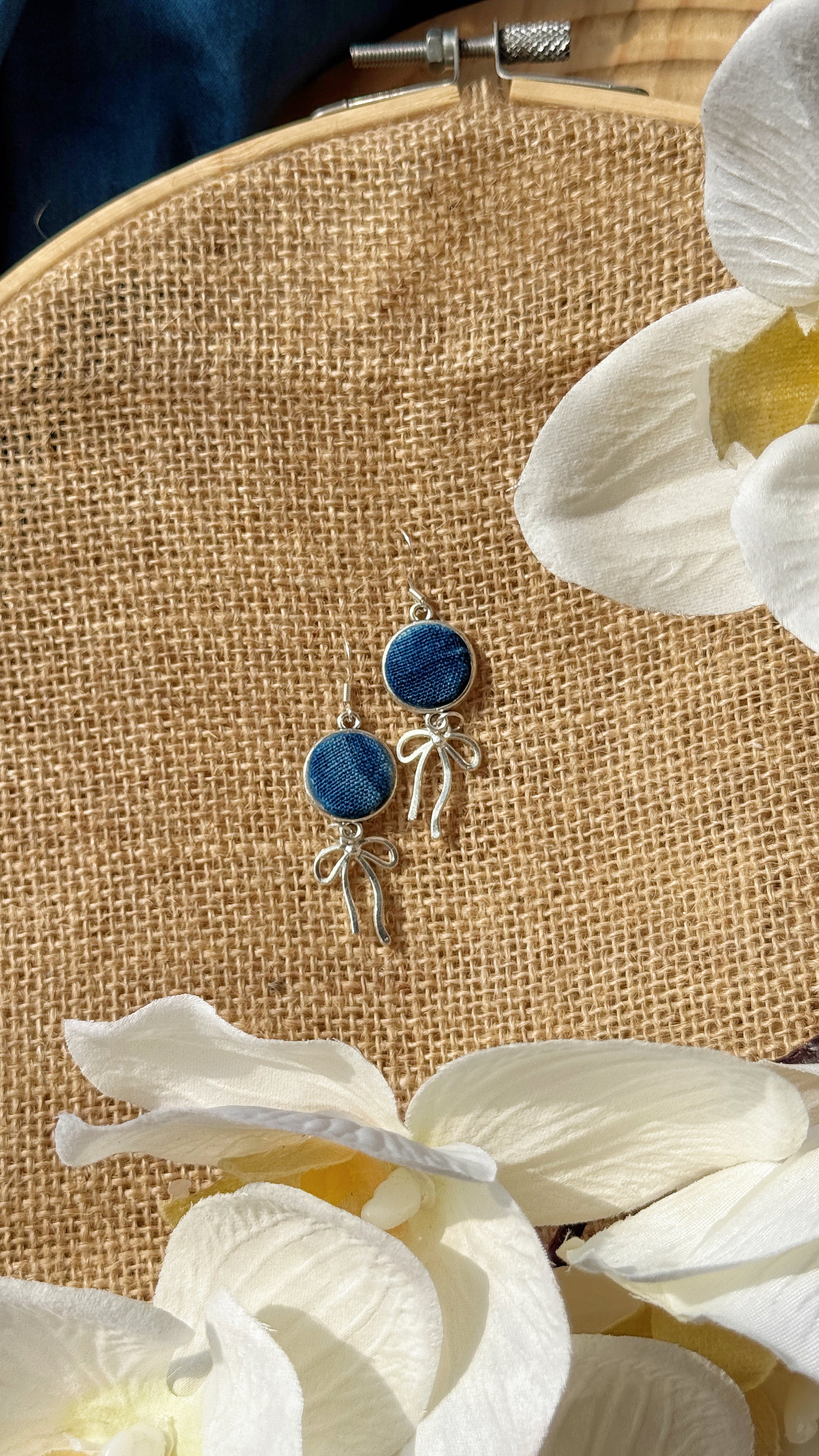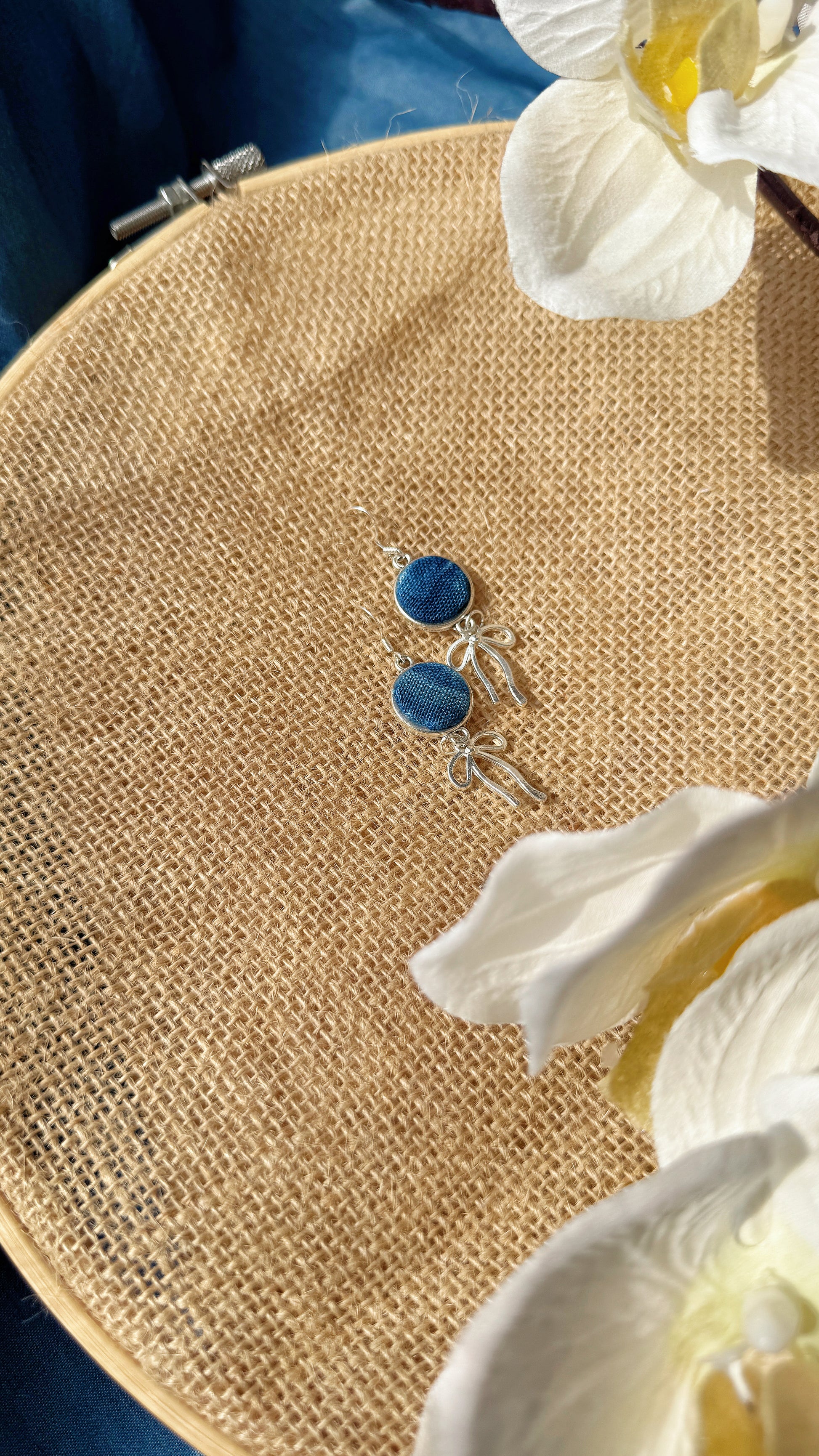 Made from hand-dyed indigo fabric, each pair of our earrings tells a story of tradition and modern craftsmanship. The bow pendant adds a touch of cute energy.