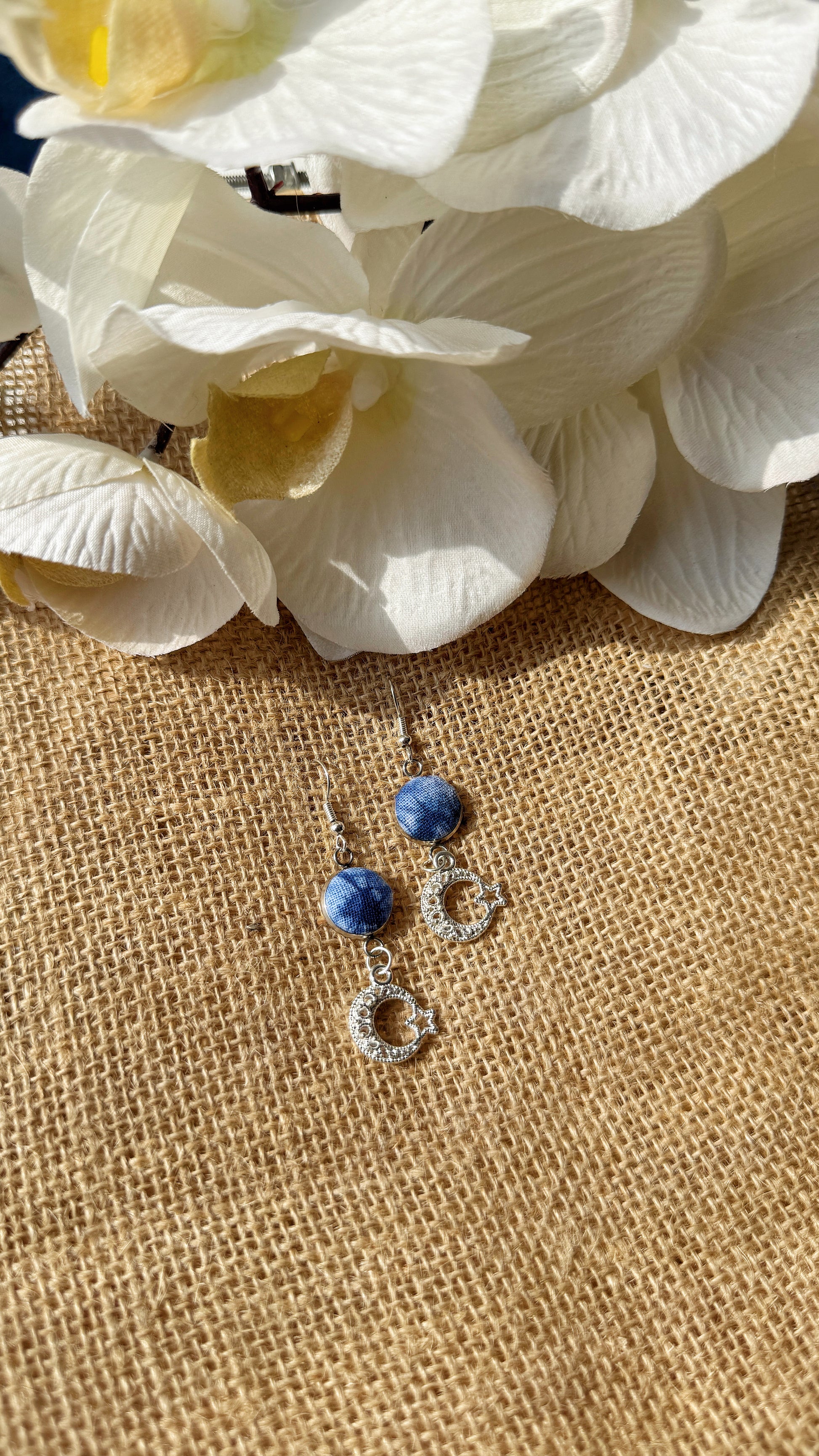 Made from hand-dyed indigo fabric with a celestial pendant, each pair of our earrings tells a story of tradition and modern craftsmanship.