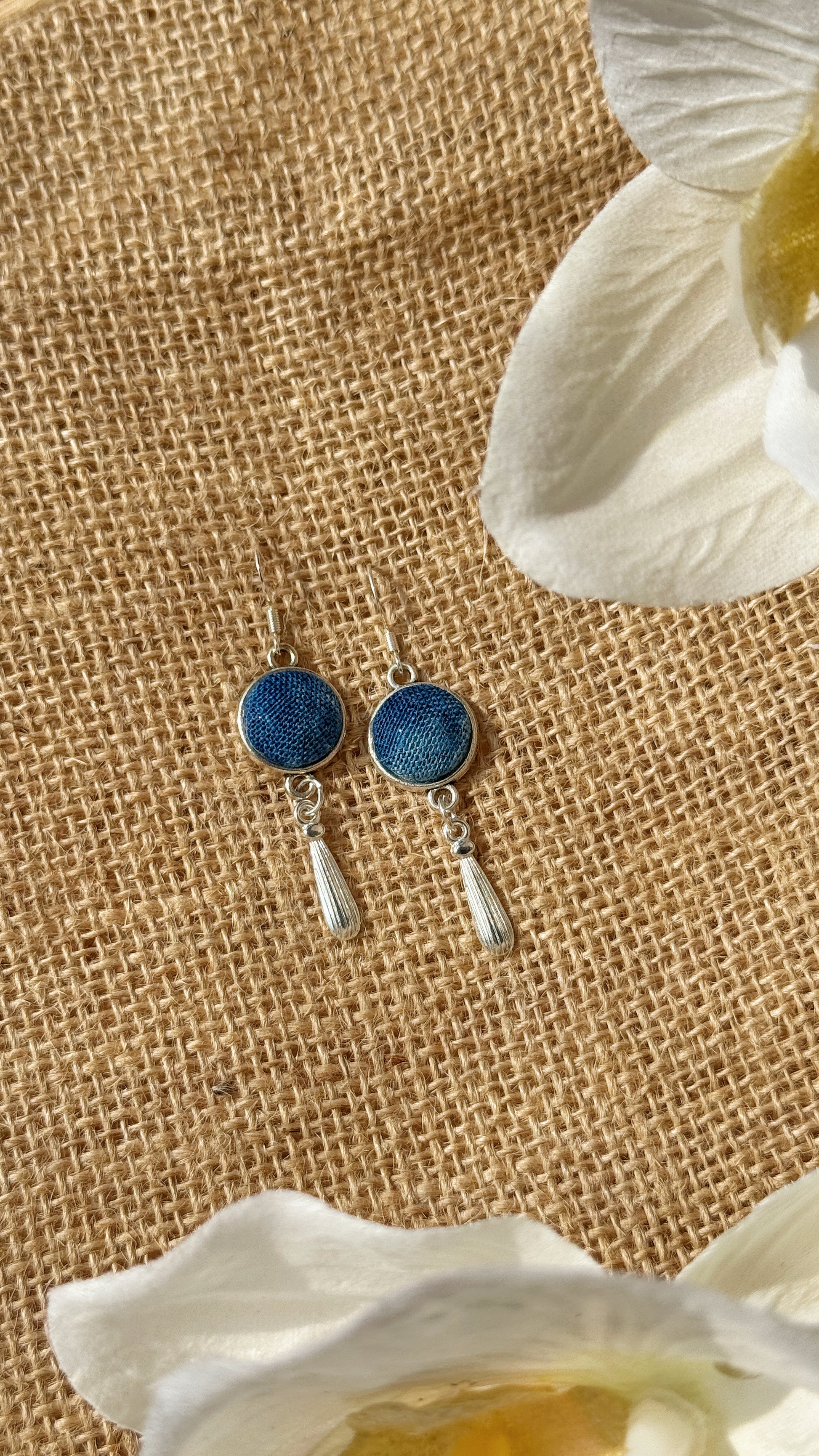 Made from hand-dyed indigo fabric, each pair of our earrings tells a story of tradition and modern craftsmanship. We name this style 落 (Luo), which refers to the drop pendant in the traditional Chinese style.