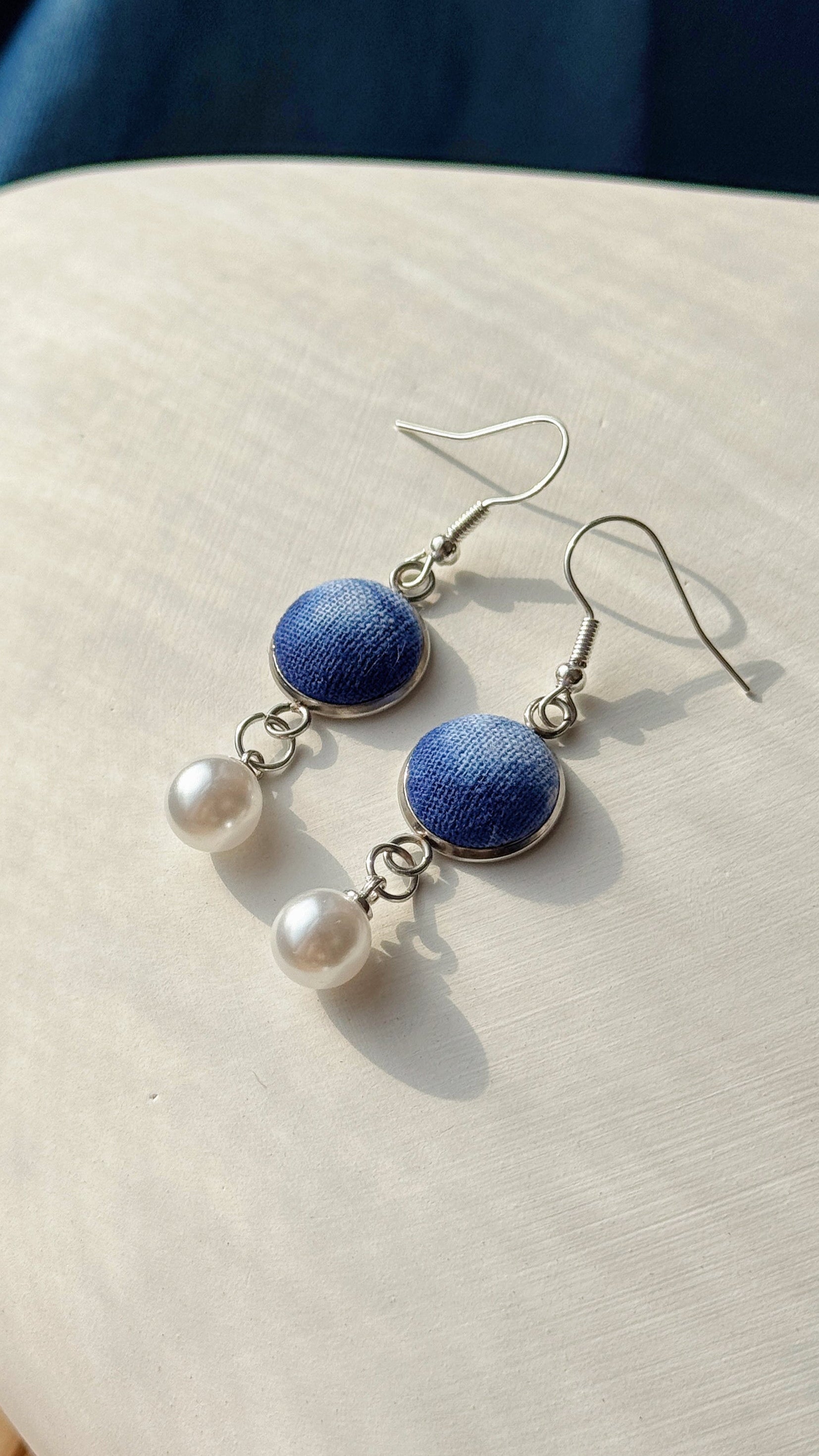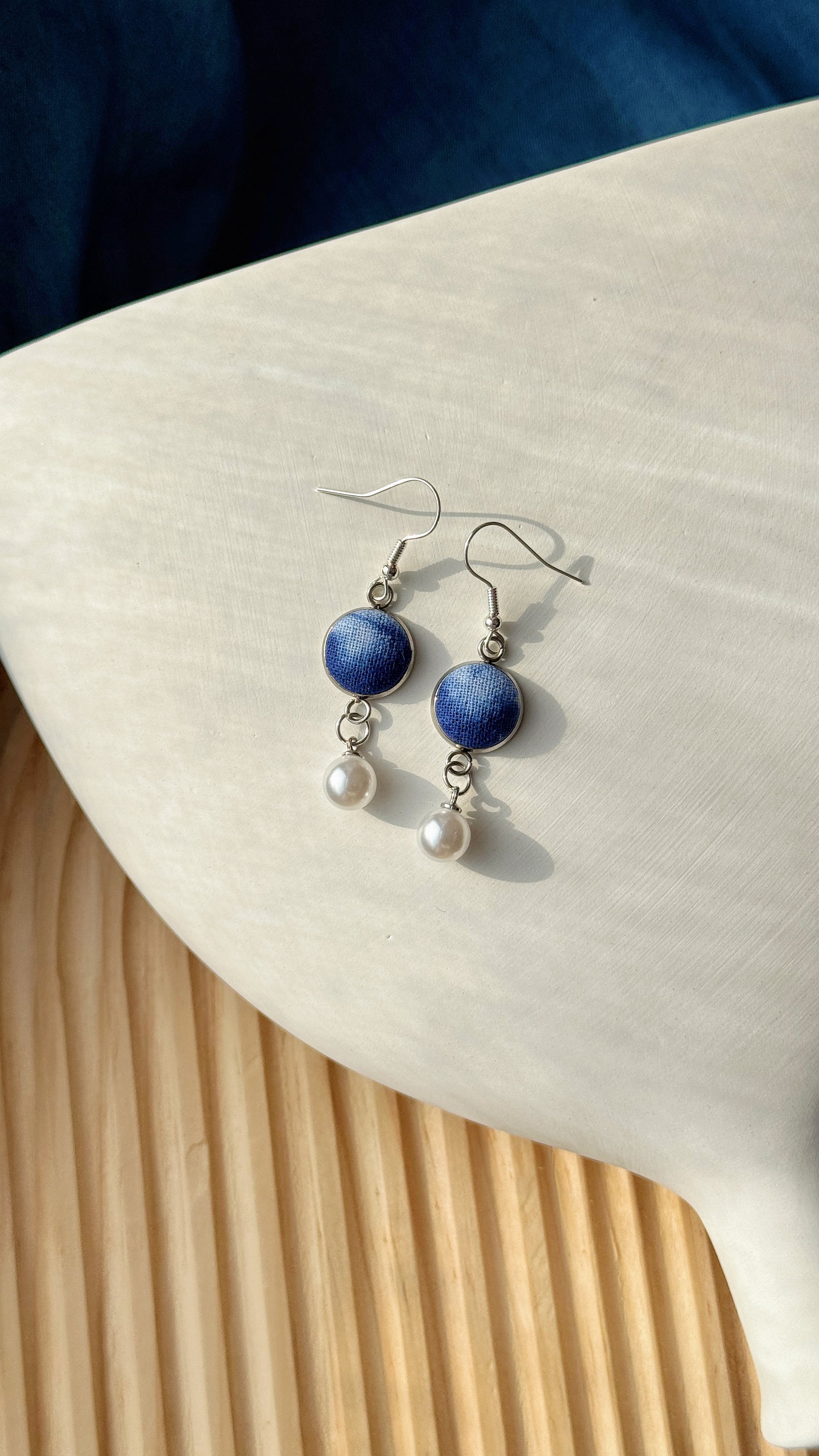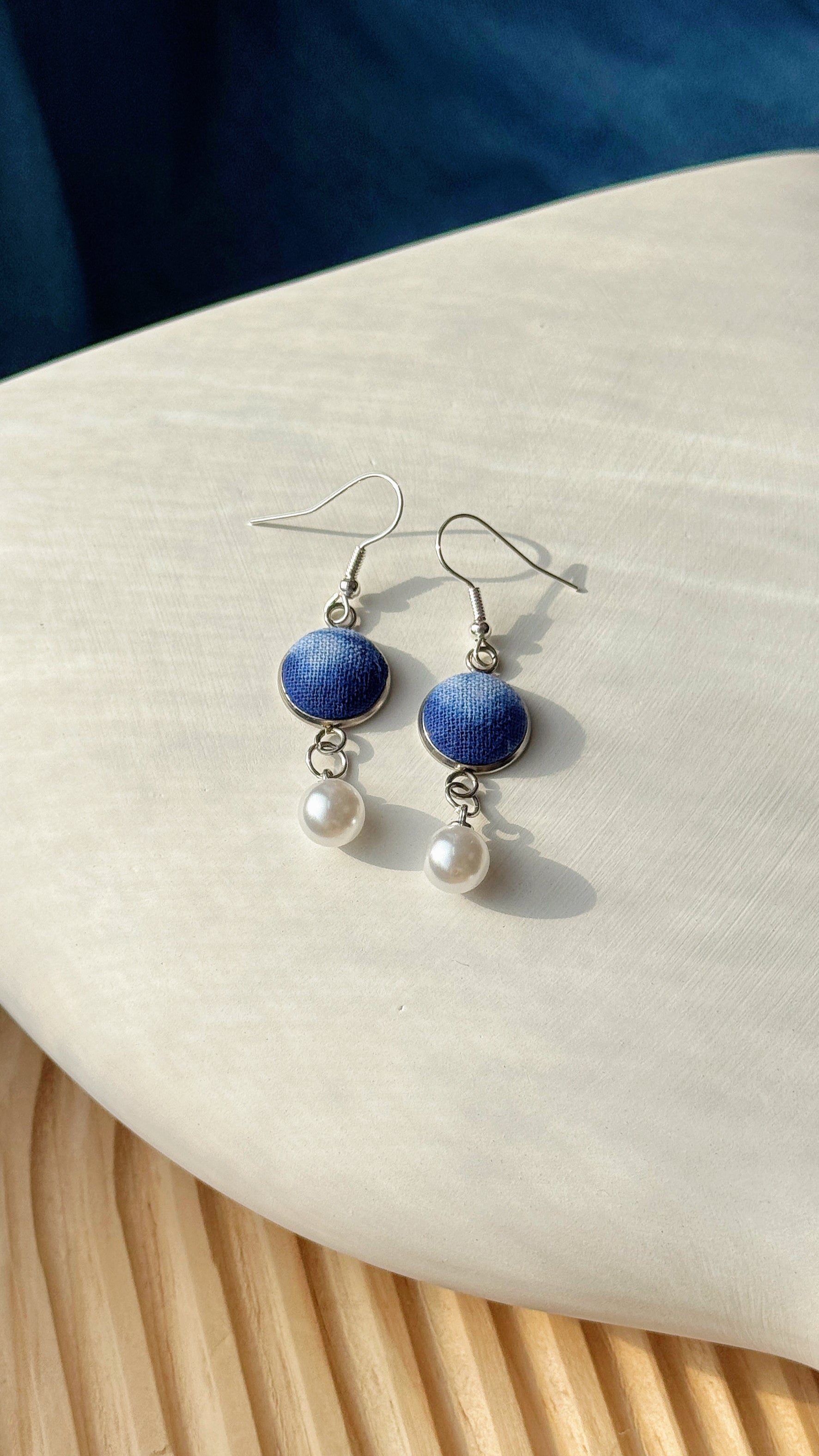 Indigo Fabric Earrings - Pearl